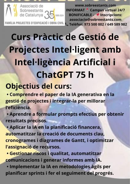 Curs Pràctic de Gestió de Projectes Intel·ligent amb Intel·ligència Artificial i ChatGPT 75 h