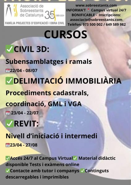 Cursos del 22 al 24/04 - CIVIL 3D- DELIMITACIÓ IMMOBILIARIA-REVIT-